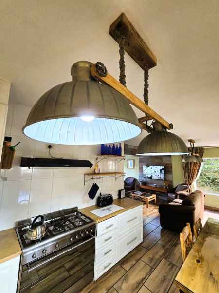 The house is spread over two levels, with the main bedroom upstairs offering an en-suite bathroom and added privacy. A second upstairs bedroom also features an en-suite bathroom, while the third bedroom is fitted with two single beds. The downstairs study has been converted into an additional bedroom with two single beds, sharing the upstairs bathroom.